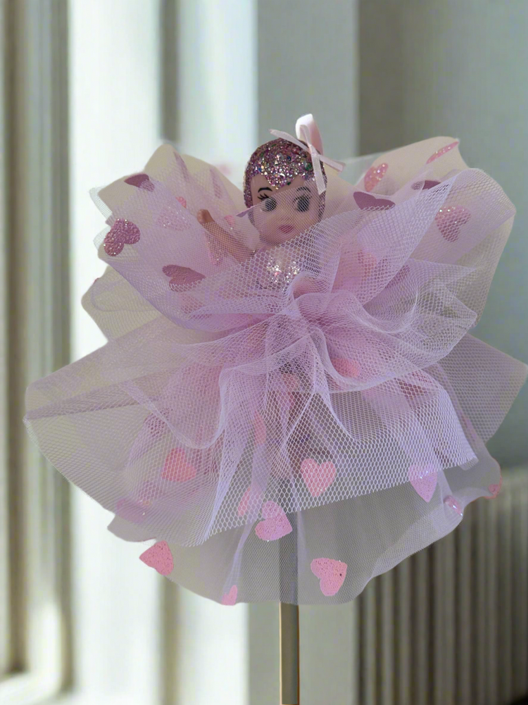 This Original Kewpie Co Kewpie Doll comes with a hand painted glittered bodice, an Original Kewpie Co Kewpie Doll Fancy tulle tutu skirt and a pink bow in her hair, on a 60cm straight bamboo cane.