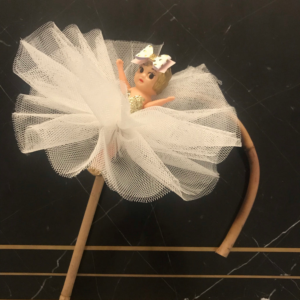 This Original Kewpie Co Kewpie Doll comes with a hand painted glittered bodice and an Original Kewpie Co Kewpie Doll white plain tulle tutu skirt. And a very decorative headpiece of an oversized bow.